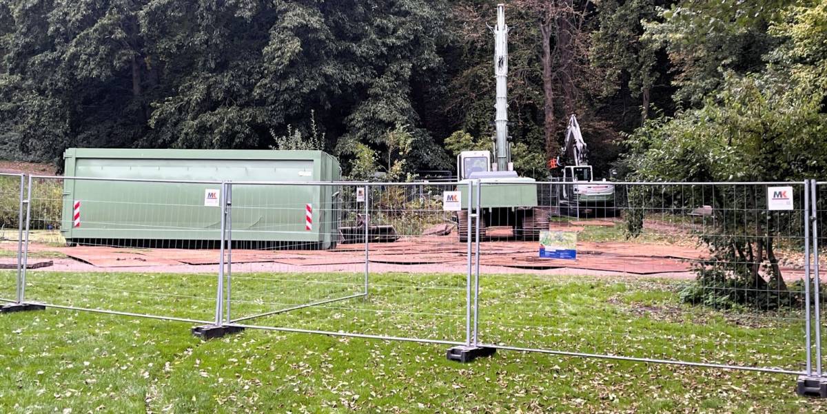 Schweres Gerät im Stadtpark: Entschlammung des Schulgartenteichs