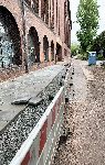 Rad- und Fußverkehr wurden für die Bauzeit getrennt, Radfahrer werden am Baufeld entlanggeführt und Fußgänger müssen an einer Querung bei der Schlachthofbrücke die Straßenseite wechseln und werden auf der Südseite bis an die Wilstorfer Straße geführt. (cb)