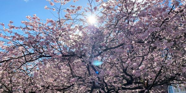 Die Zierkirsche vor dem ehemaligen Standesamt steht in voller Blüte. Foto: Christian Bittcher