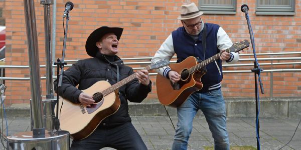 So bekamen die Mieter des Eisenbahnbauvereins und auch einige andere Anlieger ordentlich was auf die Ohren. Richtige Stars kamen, um vor kleinem, aber begeistertem Publikum zu spielen. So wie Fabian Harloff und Marko Formanek, die lange als Buddy Holly auf der Musicalbühne im Hamburger Hafen standen. Vor allem Harloff, der auch als Schauspieler gefragt ist, füllt als Musiker ganze Hallen.
