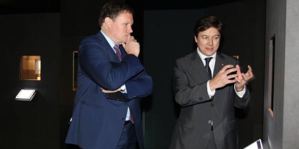 Museumsdirektor Rainer-Maria Weiss führt Carsten Brosda, Staatsrat der Kulturbehörde, durch die neue Ausstellung. Foto: cb