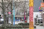 Harburg - Es erfreut das Auge, die Farben, die Muster, die wie ein Pullover Laternenpfähle und Pfeiler in der Hölertwiete umhüllen und sie zu bunten Kunstwerken machen. Guerilla Knitting