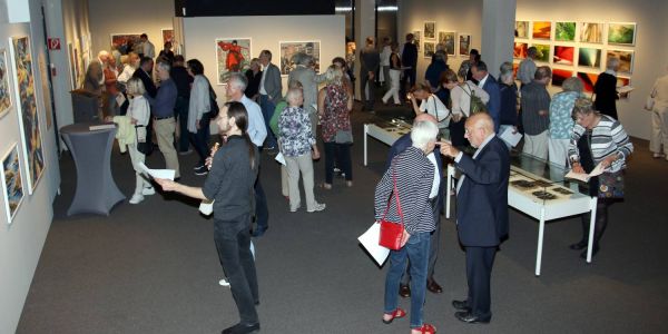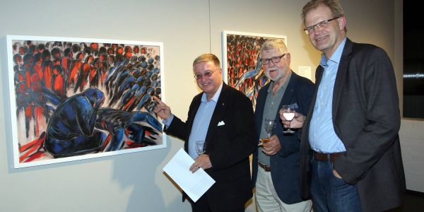 Ausstellung „Margrit Rohmann - Retrospektive“. Im Anschluss an die Eröffnungsreden von Museumsdirektor Rainer-Maria Weiss und Kurator Ernst Brennecke waren sie die ersten die die rund 100 Werke umfassende Ausstellung sehen durften.