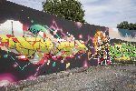 eines von zahlreichen neuen Graffiti auf der Flutschutzwand am Bostelbecker Hauptdeich. Spacige Werke sind dort gerade angesagt. Die meisten Weltraumhelden sind, so möchte man nach einem Rundgang um die auf 500 Metern beidseitig für Graffiti freigegebene Wand meinen, weiblich, kurvenreich und bewaffnet. Das ist der Himmel. Für Bodenständige. Auch eine knallige Interpretation der Simpsons ist neu auf der Betonleinwand der größten Freiluftgalerie Norddeutschlands. zv
