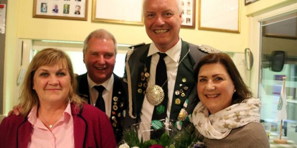 Es bleibt in der Familie: Norbert Pingel (2.v.l.) übernimmt die Würde des Marmstorfer Vizekönigs von seinem Schwiegervater Horst Schäkel. Die Ehefrauen Eike Schäkel (links) und Tanja Pingel freuen sich gemeinsam. Foto: Tapken