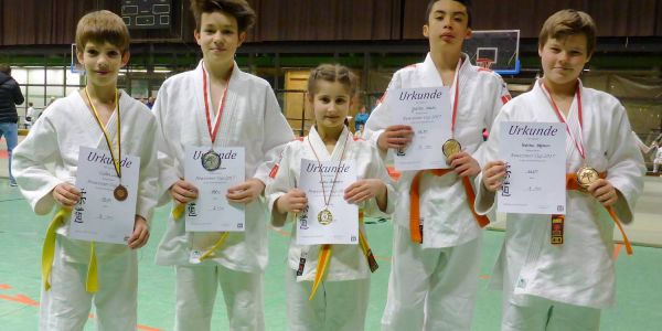 Die fünf erfolgreichen HNT-Judoka beim Newcomer Cup 2017. Foto: HNT