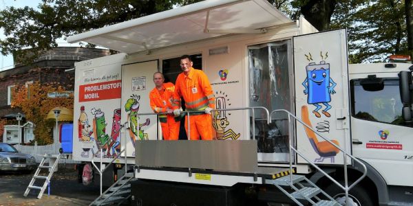 Problemstoffe gehören nicht in die Mülltonne, sondern in die mobile Problemstoffsammlung. Foto: SRHHarburg – Problemstoffe gehören nicht in die Mülltonne, sondern in die mobile Problemstoffsammlung. Die mobile Problemstoffsammlung nimmt kostenlos Schad- und Giftstoffe sowie kleine Elektrogeräte aus privaten Haushalten entgegen. Außerdem berät qualifiziertes Fachpersonal über die Entsorgung von Problemstoffen.
