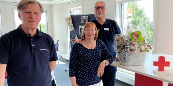 Mit seinem Gespür für humanitäre Aufgaben und einem perfekten Netzwerk ist Vorstand Harald Krüger(rechts, mit Ehefrau Dr. Sigrid Hülsbergen-Krüger und DRK-Präsident Lothar Bergmann) seit 35 Jahren für das DRK im Dienst. Foto: DRK-Kreisverban