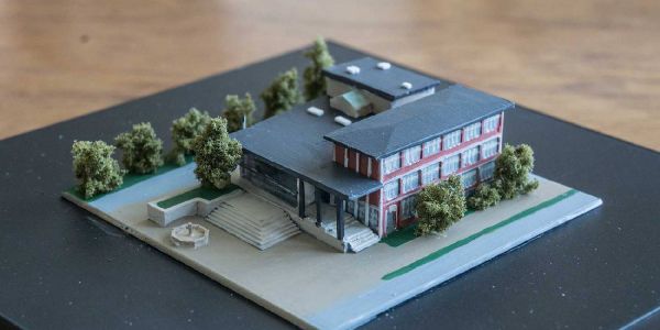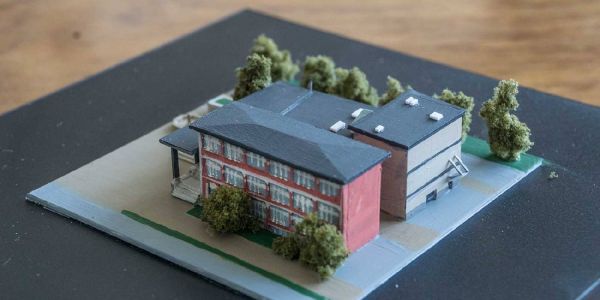 Das kleine Modell besticht durch seine Detailfreude. Selbst der etwas windschiefe Abluftschornstein oder die gläserne Überdachung am Hinterausgang des neuen Theatersaals fehlen nicht.