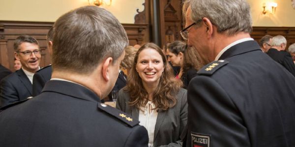 Kollegen aus der Polizei, Familie, aber auch Politiker verabschiedeten den Harburger Polizeichef in den Ruhestand. Neun Jahre lang hatte Sellmann die Polizeiwache 46 geleitet. Erstmals in Harburger Rathaus war Polizeichef Ralf Martin Meyer. Er zeigte sich vom Rathaus beeindruckt. Gekommen waren auch Innenstaatsrat Bernd Krösser, Hartmut Dudde, Chef der Schutzpolizei oder Frank-Martin Heise, Leiter des Landeskriminalamtes. Unter den Gästen war auch Senatorin Dr. Melanie Leonhard, zu der Sellmann einen engen Kontakt hatte, und mit der er "viele gute Gespräche" verbindet. Bezirksamtsleiterin Sophie Fredenhagen schaute ebenso rein, wie SPD-Fraktionschef Jürgen Heimath, CDU-Mann Rainer Bliefernicht, der über die Sicherheitskonferenz regelmäßig Kontakt zu Sellmann hatte, Britta Herrmann, Fraktionschefin der Grünen, oder Carsten Schuster von der FDP.