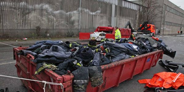 Verklebte Ausrüstung wurde nach dem Einsatz in Mulden gesammelt. Foto: zv