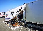 mit seinem schweren Fahrzeug auf ein Wohnwagengespann auf. Der Wohnwagen wurde "geschreddert". Die Insassen des Zugfahrzeugs, ein Pkw, der auf einen vor ihm stehenden Laster aufgeschoben wurde, kamen mit dem Schrecken davon.