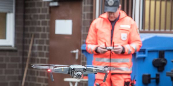 Mit einer Drohne verschaffte die Rettungshundestaffel der Einsatzführung einen Überblick. Foto: André Zand-Vakili