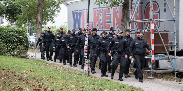 Bereitschaftspolizei rückt an. Foto: André Zand-Vakili