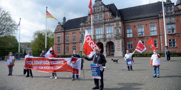Der DGB hatte bereits am Vormittag mit einem kleinen Aufgebot auf dem Rathausplatz demonstriert. Foto: André Lenthe Fotografie