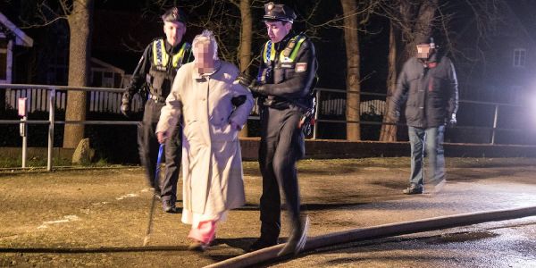 Polizisten bringen eine Hausbewohnerin in Sicherheit. Foto: André Zand-Vakili