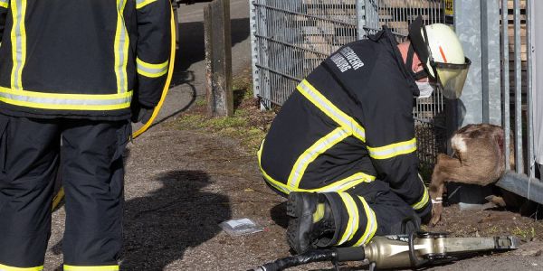 Heimfeld - Glück für ein Reh, dass an der Straße An der Landscheide versucht hatte durch ein Stahltor zu kommen und stecken blieb. Arbeiter, die eine Frühstückspause machen wollten, entdeckten Dienstagmorgen das hilflose Tier und riefen die Feuerwehr.