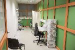 Hier befindet sich der Raum für die Erkennungsdienstliche Behandlung (Foto l.), kurz ED genannt. Es gibt vier Arbeitsplätze. Von Festgesetzten Demonstranten werden Fotos gemacht und Fingerabdrücke genommen. Gleich nebenan sind Vernehmungszimmer für die Kripo. Es gibt auch einen Arztraum (Foto r.), in dem kleinere Blessuren behandelt werden können. Gleich daneben sitzt auch die Leitungsgruppe der GESA. Im ersten stock des Gebäudes, dem ehemaligen verwaltungsbereich des Lebensmittelgroßmarktes haben Staatsanwälte ihren Bereich. Im bereich der HAlle stehen den Festgenommenen auch insgesamt sechs Telefone zur Verfügung, über die sie, beispielsweise mit einem Anwalt, Kontakt aufnehmen können.