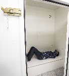Das Kernstück der GESA in der etwa 11.000 Quadratmeter großen Halle in dem ehemaligen Lebensmittelgroßmarkt mit dem Zellenbereich (Foto l.). Sie ist eine "waffenlose" Zone, in der auch Polizisten keine Schusswaffe oder Reizstoffsprühgeräte tragen. Hier befinden sich Container mit 70 Sammelzellen (Foto r.) mit jeweils 9 Quadratmeter für fünf Personen und 50 Einzelzellen mit jeweils 3,23 Quadratmeter. Die