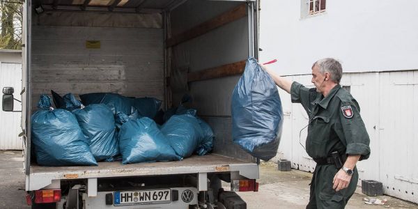 In Säcken werden die sichergestellten Hanfpflanzen abtransportiert. Foto: André Zand-Vakili