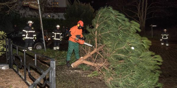 In Heimfeld war es ein Nadelbaum, der am Kiefernberg umknickte. Er blockierte eine kleine Privatstraße. Einsatzkräfte der FF Eißendorf zersägten den Stamm.