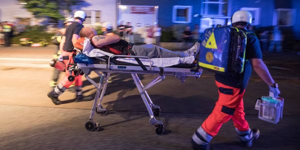 Einer der Verletzten wird zum Rettungswagen gebracht. Foto: André Zand-Vakili