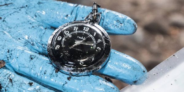 Diese Taschenuhr wurde in dem Tümpel gefunden. Foto: André Zand-Vakili