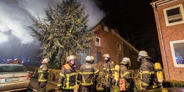 Kurz darauf schlugen die Flammen in den Nachthimmel. Als die alarmier te Feuerwehr eintraf, brannte das Dach des etwa 30 Meter langen Gebäudes auf einer Seite lichterloh. Die Einsatzzentrale gab 2. Alarm. Zwei Züge der Berufsfeuerwehr und drei freiwillige Wehren rückten an. Einsatzkräfte retteten zwei Bewohner aus dem Gebäude. Beide hatten eine Rauchvergiftung erlitten. Nach ihrer Versorgung vor Ort durch eine Notärztin kamen sie mit Rettungswagen ins Krankenhaus Altona. Die Löscharbeiten dauerten bis 5:30 Uhr. "Das Dach musste großflächig aufgenommen werden", sagt Feuerwehrsprecher Werner Nölken. "Wegen der nicht mehr tragfähigen Holzbalkengeckengestaltete sich der Innenangriff sehr schwierig und musste mit großerVorsicht vorgetragen werden."