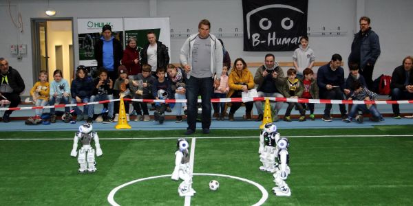 Die heimlichen Favoriten bei Alt und Jung waren freilich die Fußball-Roboter der TUHH, die in mehreren Matches gegen das Team der Uni aus Bremen antraten. Foto: Christian Bittcher