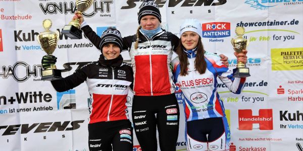 Die drei Erstplatzierten im Damenrennen: Stefanie Paul (v.l.2. Platz), Siegerin Larissa Luttschka und Anna Lindenau. Foto: Christian Bittcher