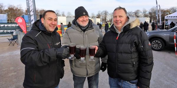 Ein Glühwein gegen die Kälte: Bo Azzouz mit Guido Mönke und Christian Müller. Foto: Christian Bittcher