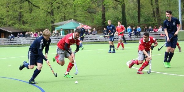 Einer der Höhepunkte auf dem Hockey-Feld war die Oberliga-Partie der Herren: TGH2 und Alster 2 schenkten sich nichts. Foto: Chrisitan Bittcher