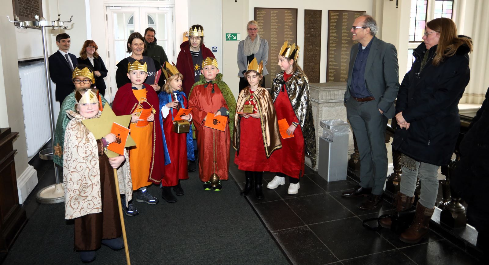 Es wurden mehrere Lieder gesunden und der traditionellen Segen an die Tür des Sitzungssaals geschrieben. Zudem erklärten die Kinder den Erwachsenen das Motto der diesjährigen Spendensammlung, denn in vielen Teilen der Welt müssen Kinder immer noch arbeiten und können nicht in die Schule gehen.