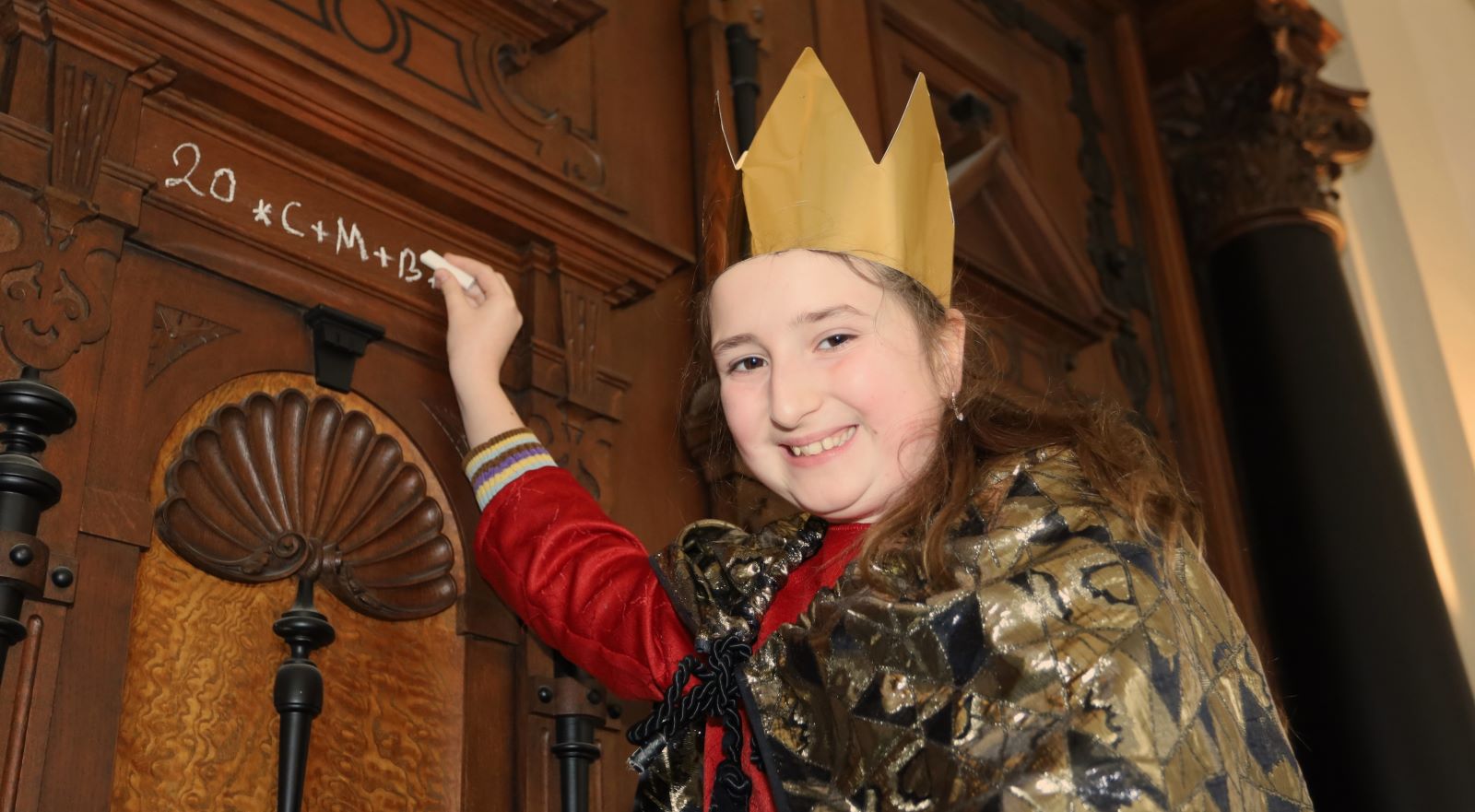 Die zehnjährige Lara, verkleidet als König Balthasar, schrieb das Kreidezeichen „20*C+M+B+26“ an die hölzerne Tür des großen Sitzungssaals. Foto: cb