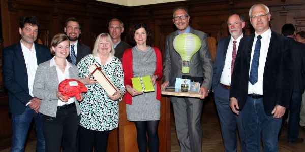 Die anderen Fachamtsleiter des Bezirksamts schenkten dem Ruheständler eine Ballonfahrt. Foto: Christian Bittcher