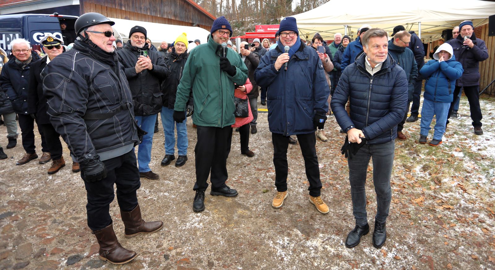 Marmstorf – Gelungenes Spektakel auf dem Feuerteich: Nach Angaben der Veranstalter trotzten knapp 2000 Besucher am Sonntag der Kälte und ließen sich die 24. Marmstorfer Teichwette nicht entgehen. Marmstorfs Schützenkönig Stefan Heidtmann und Ex-Fußballprofi Thomas Helmer wetteten, das sie sich trockenen Fußes in der Mitte des Teiches treffen werden.