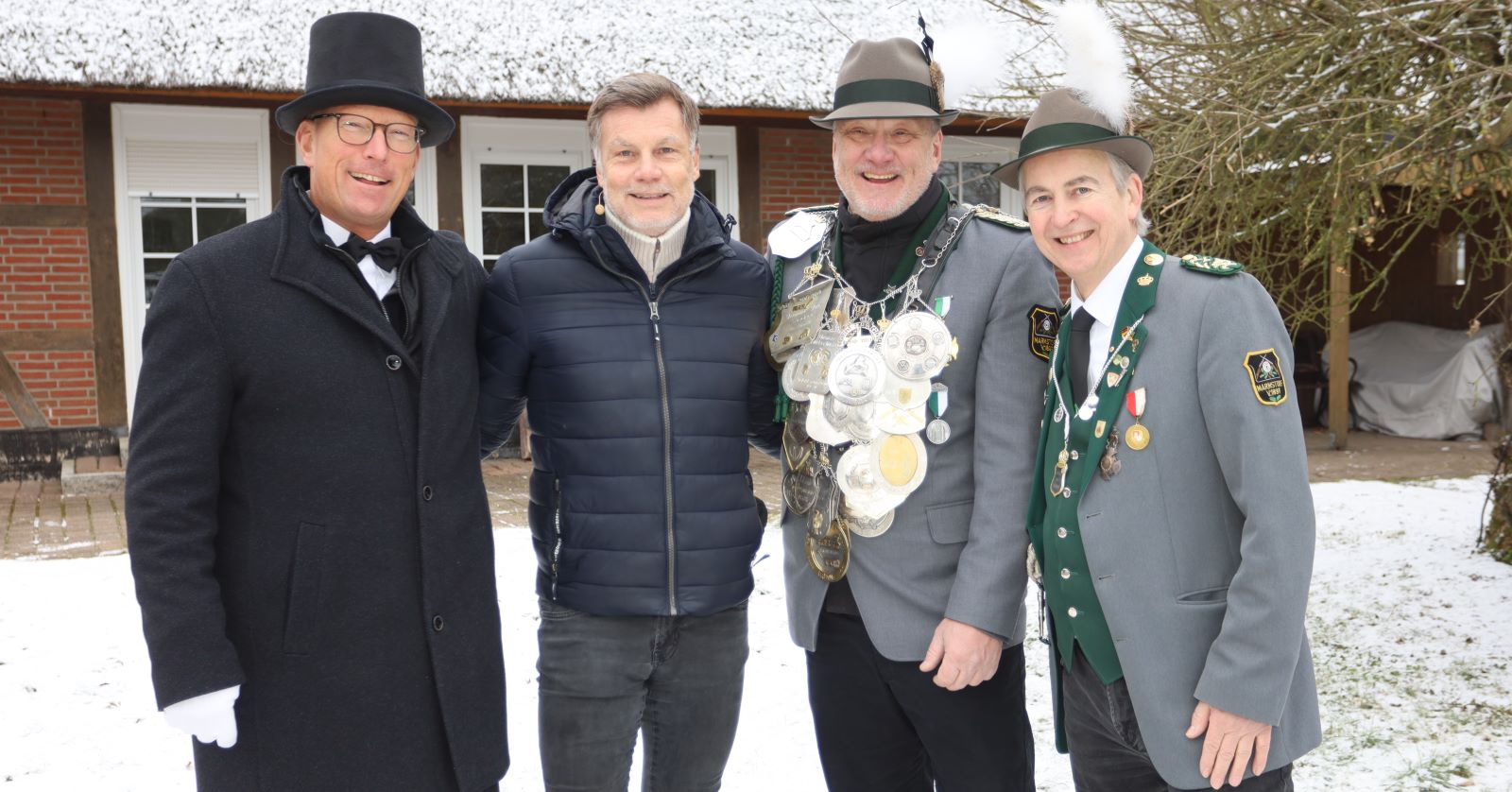 Gleich gehts los: Adjutant Arne Wichers, Ex-Fußballprofi Thomas Helmer, König Stefan Heidtmann und Rainer Bliefernicht. Foto: cb