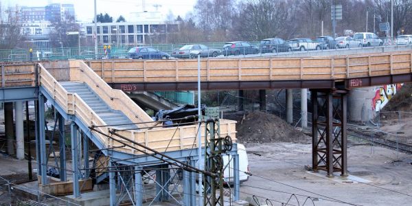 Die Brücke führt die Hannoversche Straße über die Gleise der Deutschen Bahn. Die Sperrung gilt ab 9 Uhr. "Der LSBG baut zunächst das Geländer ab und entfernt die Abdichtung und den Belag. Der eigentliche Abbruch ist ab Freitag, 23. Februar, in einer 55 Stunden dauernden Gleisvollsperrung geplant. Parallel werden bis voraussichtlich 28. März Kampfmittelsondierungen, Erdarbeiten und Gründungsarbeiten durchgeführt", sagt Susanne Meinecke, Pressesprecherin der Behörde für Wirtschaft, Verkehr und Innovation.