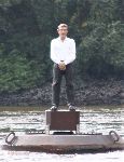 Harburg - Schwarze Hose, weißes Hemd, den Blick gelassen ins Weite gerichtet – Der Bojenmann auf der Süderelbe ist wieder da. Seit