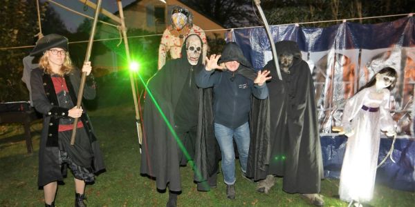 „So voll war es bei uns noch nie“, sagte Torben Reimers. Gemeinsam mit einem 20-köpfigen Team hatte er mit alten und neuen technischen Raffinessen, das Haus am Blaumeisenweg wieder in ein Gruselkabinett verwandelt, das die Blicke auf sich zog. Rekordverdächtige 800 Kinder klingelten an der Tür, um vom Sensenmann Süßigkeiten zu bekommen. „Unsere Vorräte an Süßigkeiten haben ganz knapp ausgereicht. Es war eine Punktlandung", sagte uns Torben Reimers heute.