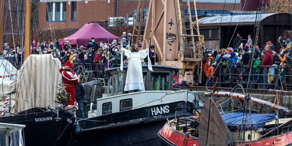 In diesem Jahr hatte der Nikolaus, gespielt von Bootseigner Matthias Kramer, der auf dem Zweimaster "Rotkehlchen" einfuhr, tatkräftige Unterstützung von einem vollbärtigen Engel - gespielt von Arne Tingel Theophil - der die Kinder begeisterte. Die Stimmung: Toll.