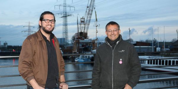 Gorch von Blomberg (rechts) verkündigte gemeinsam mit seinem Mitstreiter Timo Blume die Nachricht, das es 2017 kein Binnenhafenfest geben wird. Foto: cb