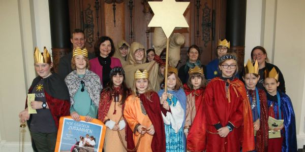 katholischen Pfarrgemeinde St. Maria - St. Joseph. Verkleidet als Caspar, Melchior, Balthasar, Kamel und Sternträger bringen die Sternsinger Gottes Segen in mehr als 100 Haushalte. Das bundesweite Motto lautet in diesem Jahr "Wir gehören zusammen - in Peru und weltweit".
