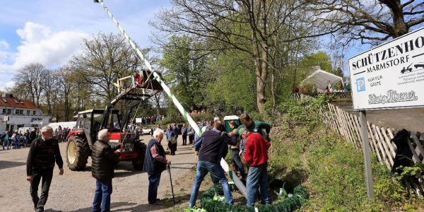 Marmstorf - Perfekter Start in den Wonnemonat Mai: Nach zwei Jahren Corona-Pause konnte am Sonntag in Marmstorf endlich wieder der Maibaum aufgestellt werden – und zwar so wie die Marmstorfer es mögen: Als Event mit allem was dazugehört lockte das Spektakel wieder viele Besucher in den alten Dorfkern.