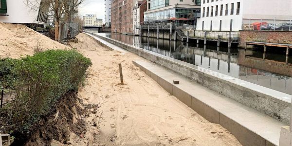 Harburg – Endspurt am Westlichen Bahnhofskanal: Die Sanierung der historischen Uferwand ist weitestgehend