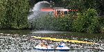 Der böige Wind aus und der zusätzliche Schub aus den Schläuchen der Feuerwehr Eißendorf sorgten beim 11 Entenrennen für einen neuen Streckenrekord. Foto: Christian Bittcher