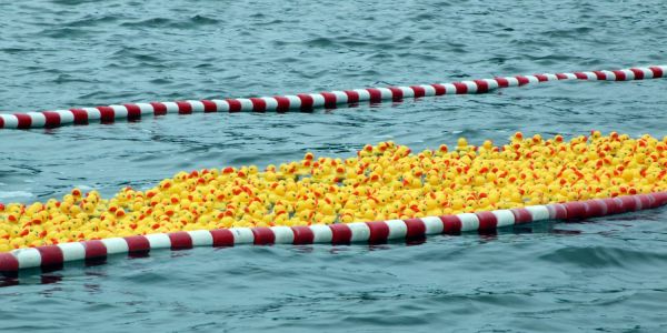 Gleich gehts los: Die Enten werden in Position für den Start gebracht. Foto: Bittcher