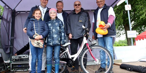 Über den Sonderpreis, ein Kinder-Fahrrad, freute sich Thomas Dedeck aus Neugraben. Foto: Bittcher