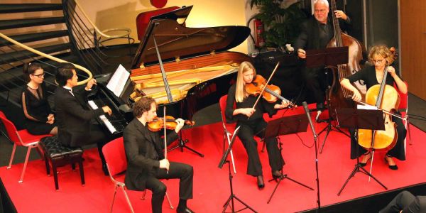 Mit Spannung wurde von den Gästen der Sparkasse das Kammermusik-Konzert im Harburger Beratungscenter erwartet. Auf dem Programm standen das "Forellenquintett" von Franz Schubert und das Klavierquintett c-moll op. 16 (1874) von Hermann Goetz.