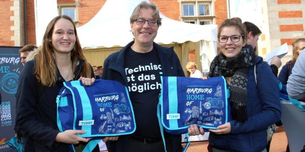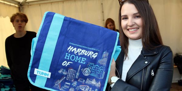 gemeinsam mit der Technischen Universität Hamburg (TUHH) ein Willkommenspaket für die Erstsemesterstudierenden geschnürt. Am Dienstag Vormittag wurden die ersten 850 Taschen vor dem Harburger Rathaus an die neuen Erstsemester verteilt. Und der Andrang sehr groß: Bei tollem Herbstwetter bildete sich sofort eine lange Schlange am Stand der TUHH.